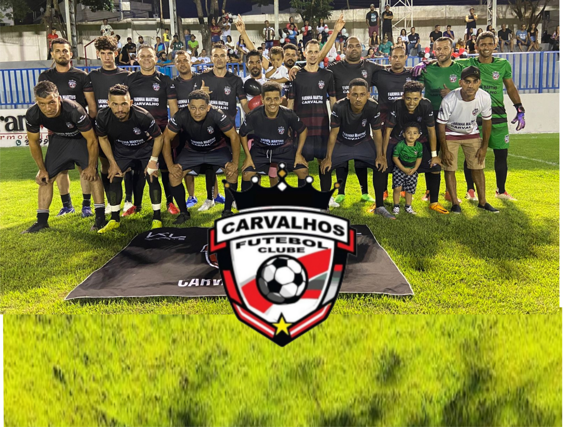 O elenco do Carvalhos Futebol Clube é formado pelo Gustavo no gol, Rona, Virgílio, Alan, Tinha, Cisco,